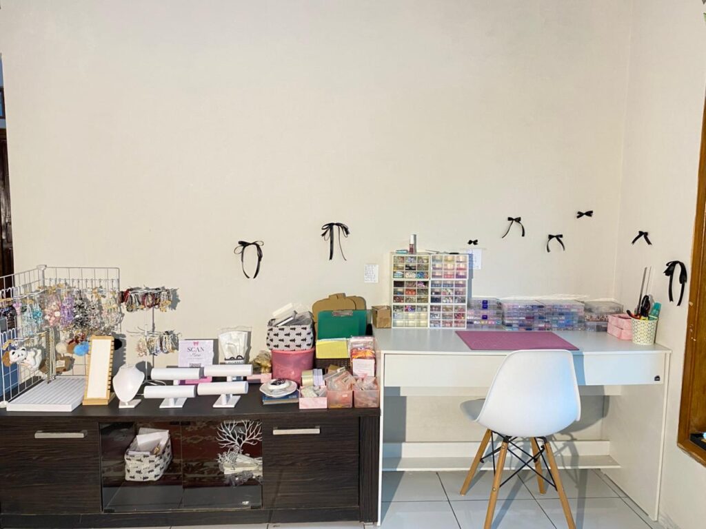 pembuatan aksesoris berbahan dasar manik-manik, seperti gelang, kalung,